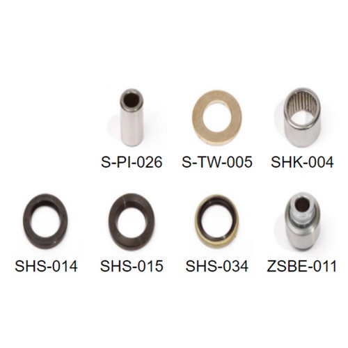 Complete kit of bushings, dust covers, bearings for the complete storage of the frame connection bearings and levers of the shock absorber.
