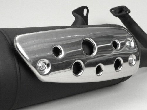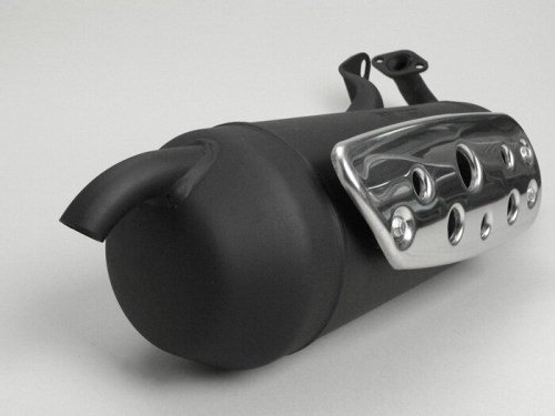 Il Silent Pro è la scelta giusta per tutti coloro che sono alla ricerca di un sistema di scarico sportivo molto discreto. Con il Silent Pro il nome dice tutto, uno scarico molto silenzioso con un significativo aumento della velocità massima. Grazie alla sua gamma di velocità molto ampia è molto facile da sintonizzare su motori da 50ccm e domare motori da 70ccm. Si prega di notare: I sistemi di retrofit di solito hanno sempre una potenza maggiore rispetto allo scarico originale. Per ottenere un'approvazione, vengono strozzati in fabbrica, il che può causare uno spostamento della banda di potenza. Affinché lo scooter possa raggiungere la sua piena potenza e velocità, può quindi essere necessario adattare il motore al nuovo scarico con altri pesi del variatore e/o molle della frizione, anche se queste ultime devono essere utilizzate strozzate su un motore di produzione. AI-translation