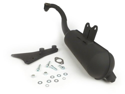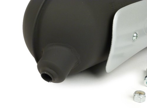 Scarico -Top Performance- Alimentato con E-marking. Con la serie POWERED di Top Performance troverete uno scarico molto poco appariscente, ma comunque molto potente. Il POWERED è otticamente poco appariscente e difficilmente può essere distinto dal potenziometro seriale. Questo sistema di scarico da turismo molto robusto può battere molti scarichi sportivi in combinazione con un set da 70 ccm. I sistemi possono essere regolati molto facilmente grazie alla buona curva di coppia. Lo scarico viene strozzato attraverso un cono nel gomito. Si prega di notare: I sistemi di retrofit di solito hanno sempre una potenza maggiore rispetto allo scarico originale. Per ottenere un'approvazione, vengono strozzati in fabbrica, il che può causare uno spostamento della banda di potenza. Affinché lo scooter possa raggiungere la sua piena potenza e velocità, può quindi essere necessario adattare il motore al nuovo scarico con altri pesi del variatore e/o molle della frizione, anche se queste ultime devono essere utilizzate strozzate su un motore di produzione. AI-translation