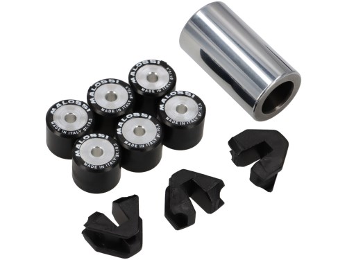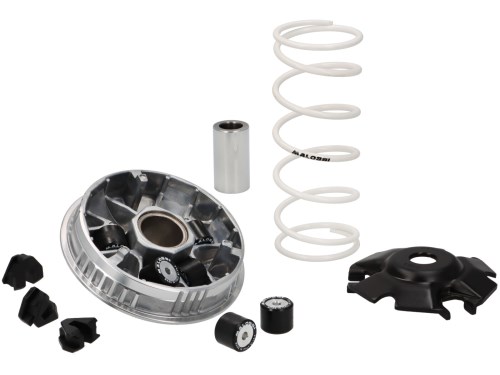 Die Variomatik MALOSSI Multivar bringt dank eines wesentlich optimierten Schaltvorgangs schon auf Serienmotoren sehr gute Ergebnisse im Hinblick auf die Verbesserung von Top Speed und Beschleunigung, und dass ohne den Motor stärker zu belasten. So sind für jedes Modell die Rollenlaufringe spezifisch kalkuliert worden und der Nutzumfang der Gleitoberfläche des Riemens ist zusätzlich erweitert worden. Bei so einem hohen technologischen Aufwand ist es nahezu selbstverständlich, dass die besten Materialien und die modernsten Fertigungsmethoden Anwendung finden: Selbstschmierende Gleitbuchse aus Sinterstahl Nabe aus legiertem Stahl Gleitoberfläche mit einer Auflage aus hartem, geschliffenem und geläppeltem Chrom Halbriemenscheibe aus Silizium-Aluminiumlegierung mit Präzisions-NC-Maschinen gefertigt Diamanten-Endbearbeitung . Damit steht ganz neuem Fahrspaß nichts mehr im Wege. Ruckfreies Anfahren, größerer Schaltkomfort, mechanische -Stille- auch bei hoher Geschwindigkeit und konstante Fahrleistungen sind das Ergebnis.